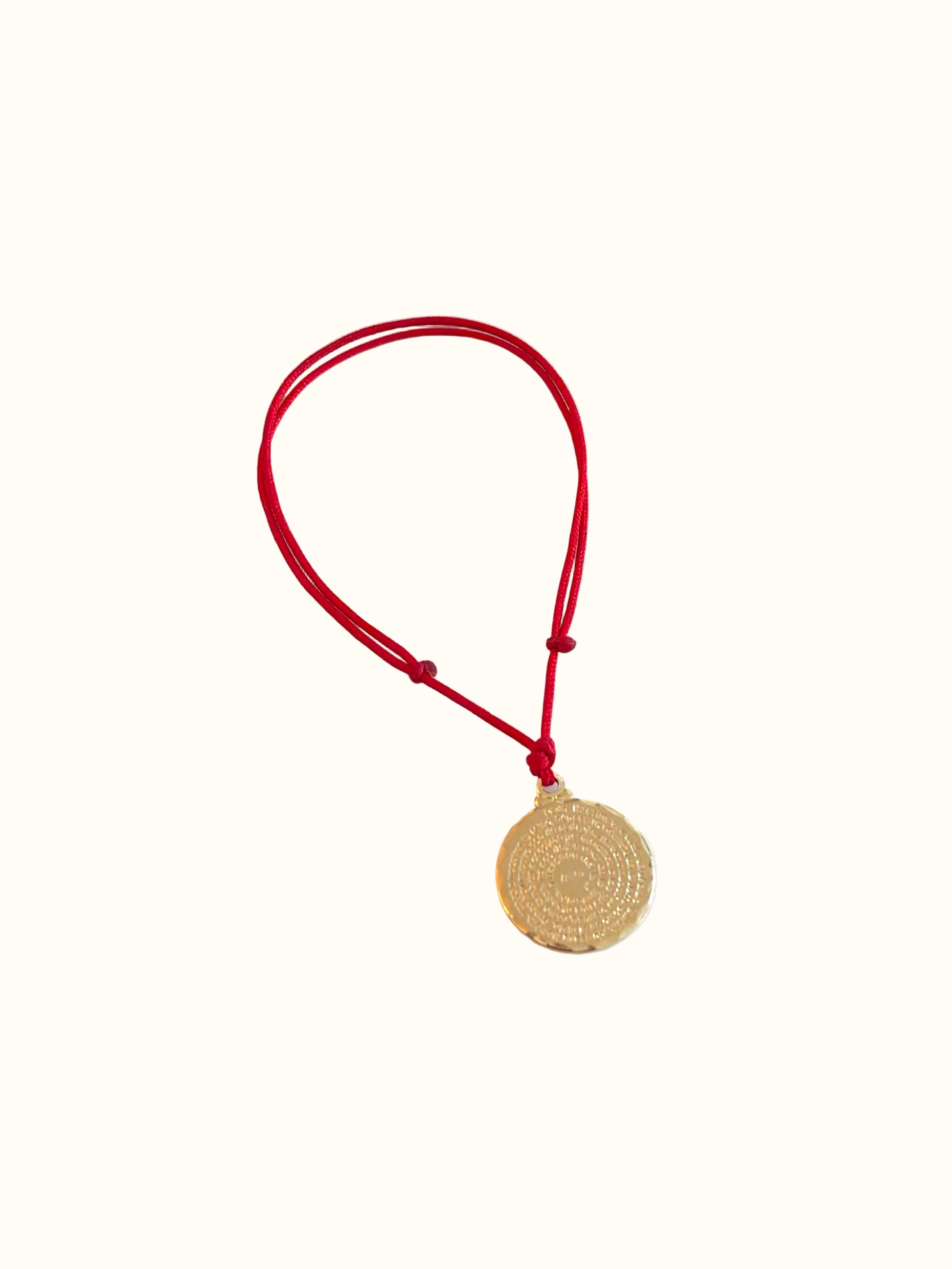 This is an adjustable bracelet with a medal with the Our Father written!